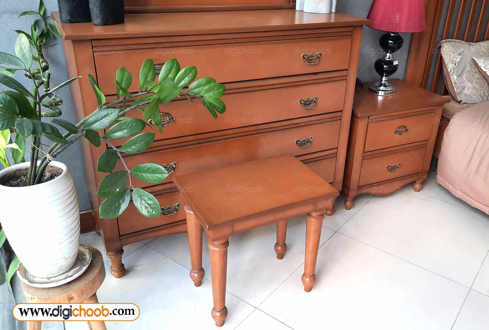 تخت خوابی که برای سرویس خواب آیهان در نظر گرفته شده است؛ یک تخت خواب دو نفره در ابعاد 160*200 سانتی متر می باشد. دو پاتختی در طرفین تخت خواب ست آیهان (دو کشو)، یک صندلی ساده و میز آرایش ( دارای چهار کشو ) و همچنین یک آینه، بخش های دیگر تشکیل دهنده ی سرویس خواب آیهان به شمار می روند. پایه های تخت خواب، میز آرایش و پا تختی ها همگی از جنس چوب روسی هستند که روی آن با دستگاه سی ان سی - روتاری شده است که البته سرویس خواب آیهان را به یک سرویس خواب زیبا و فوق العاده شیک تبدیل کرده اند.