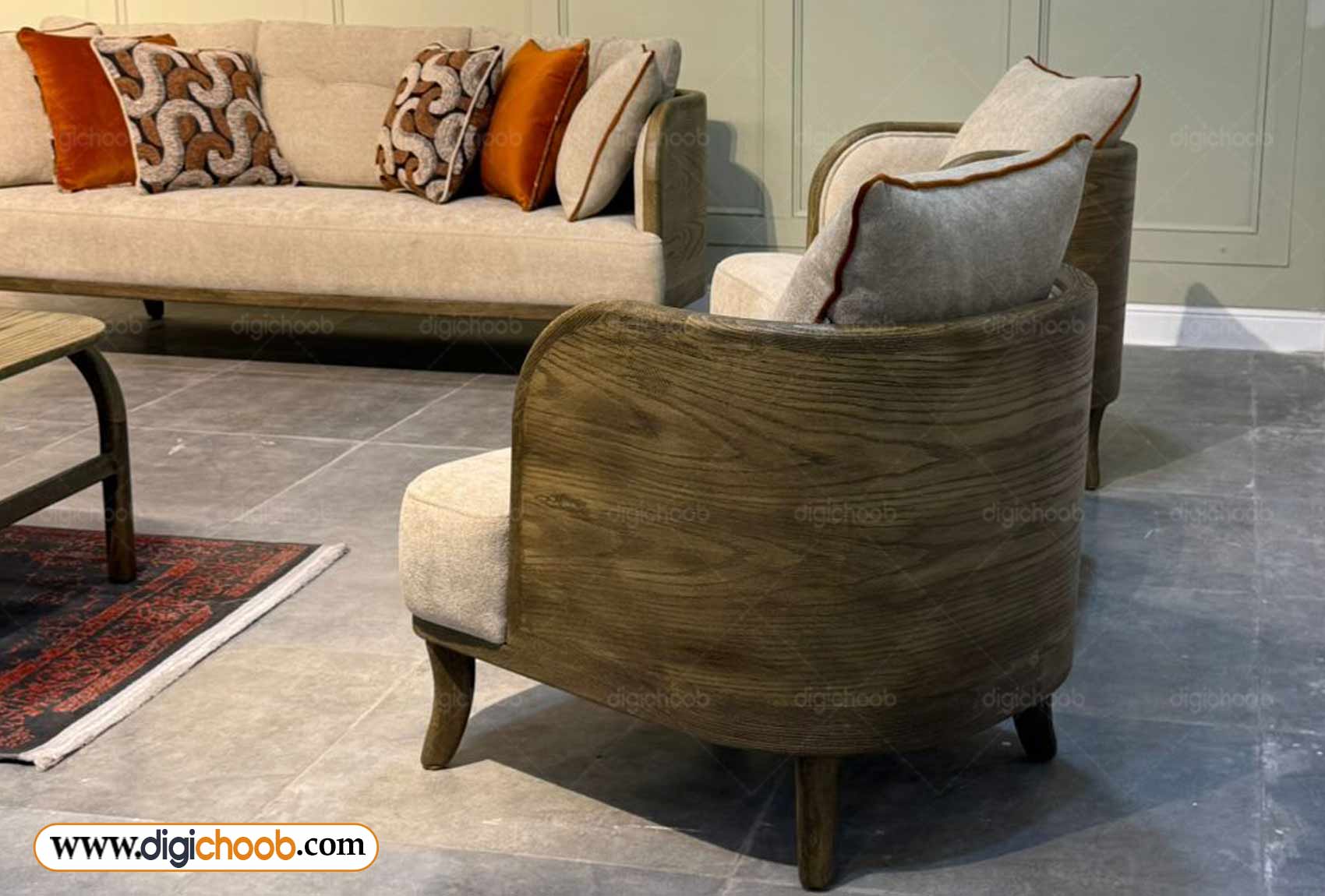 مبل تک نفره نئوکلاسیک نیهان با کلاف داخلی از چوب روسی و فلز و نمای چوب راش گرجستانی ساخته شده است. نشیمن این مبل با اسفنج یورولوکس ۳۵ کیلویی طراحی شده است. این مبل قابلیت ست شدن با کاناپه، میز عسلی و جلومبلی نیهان را دارد