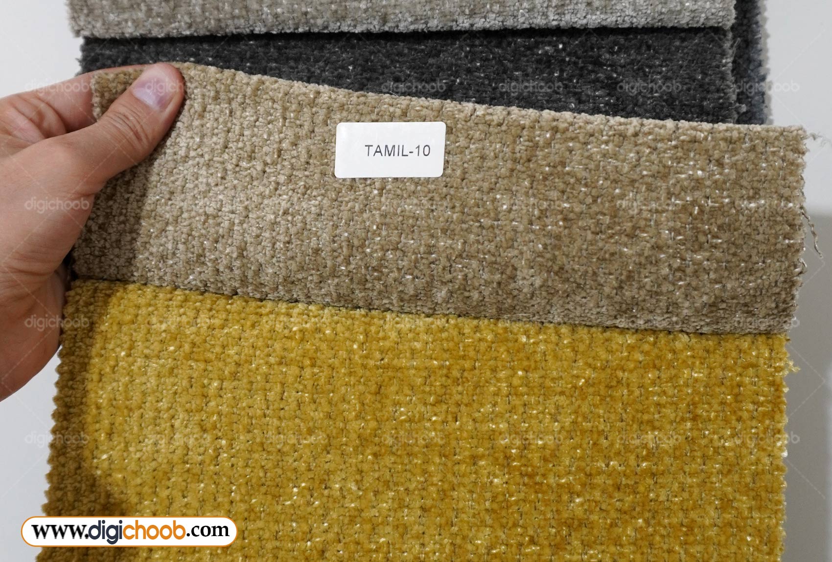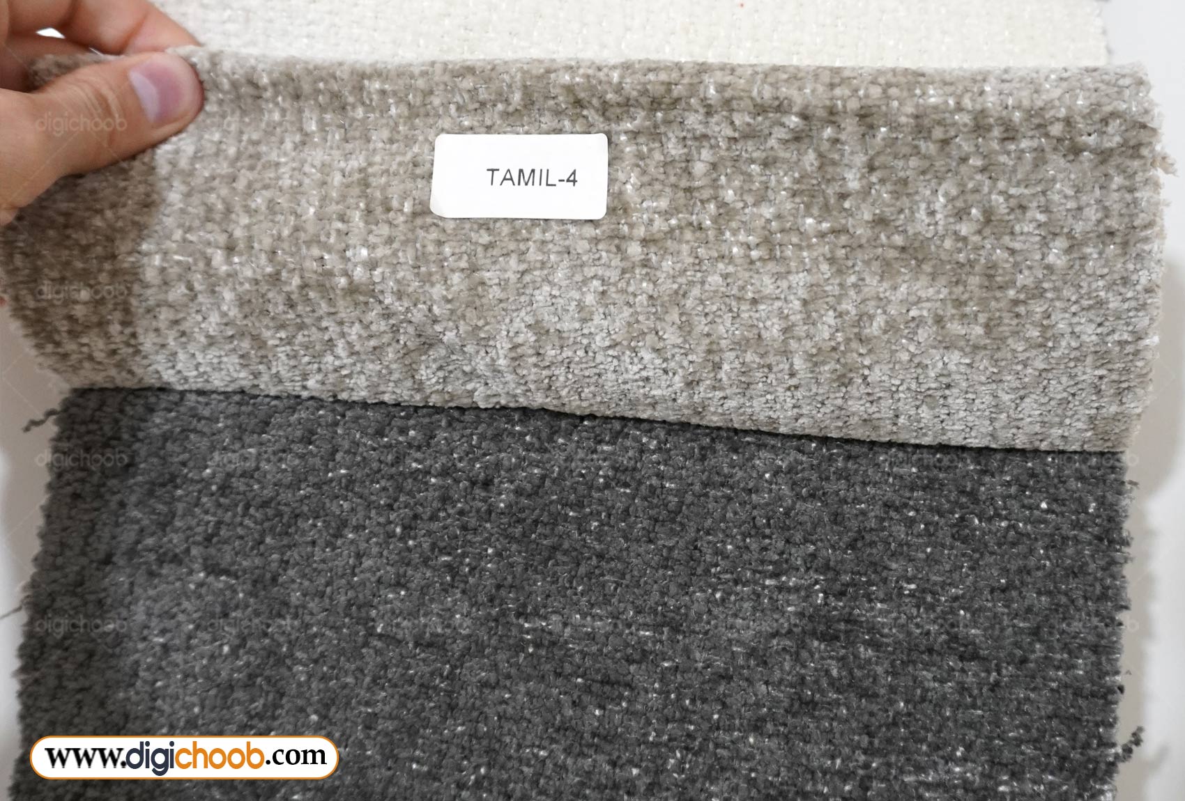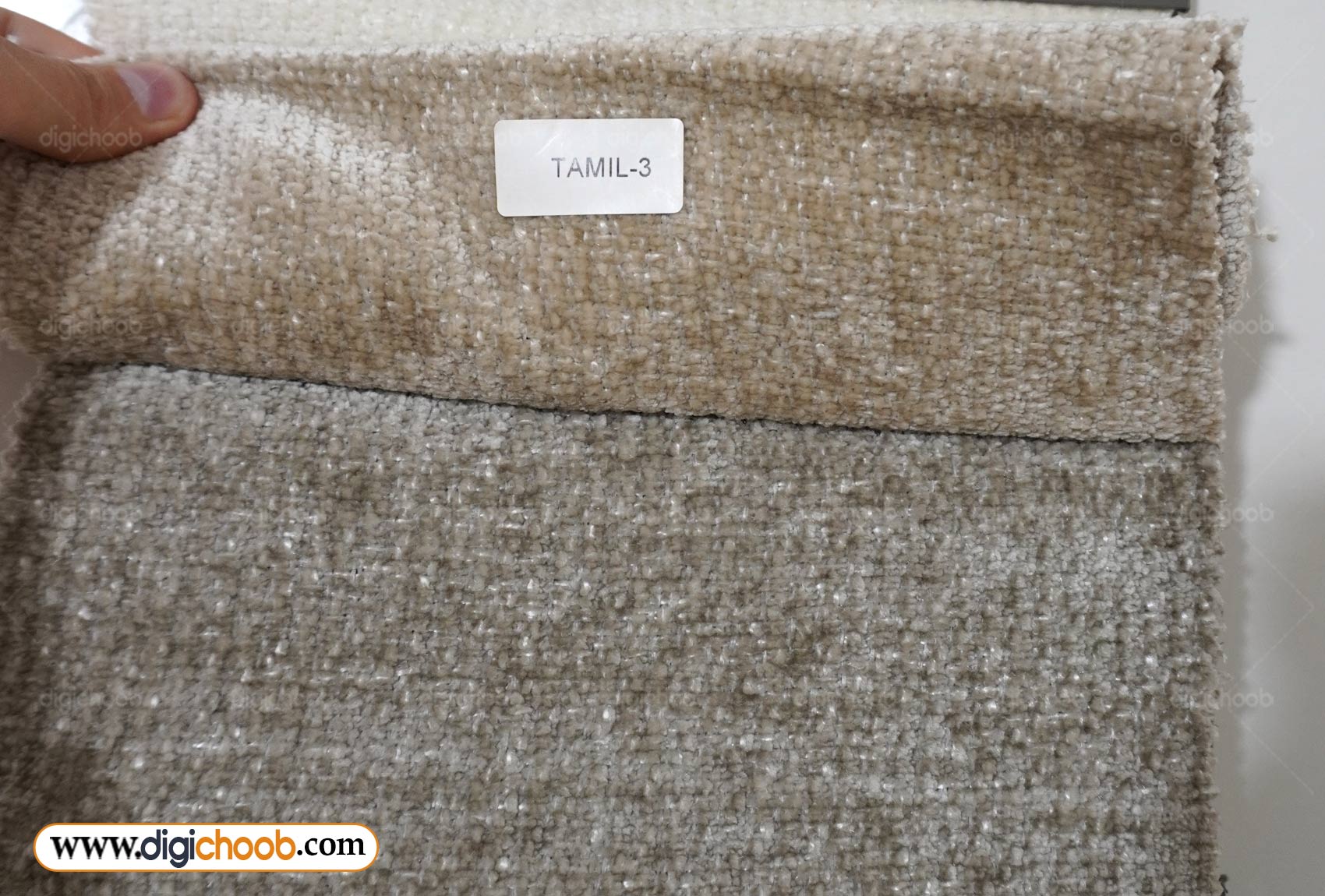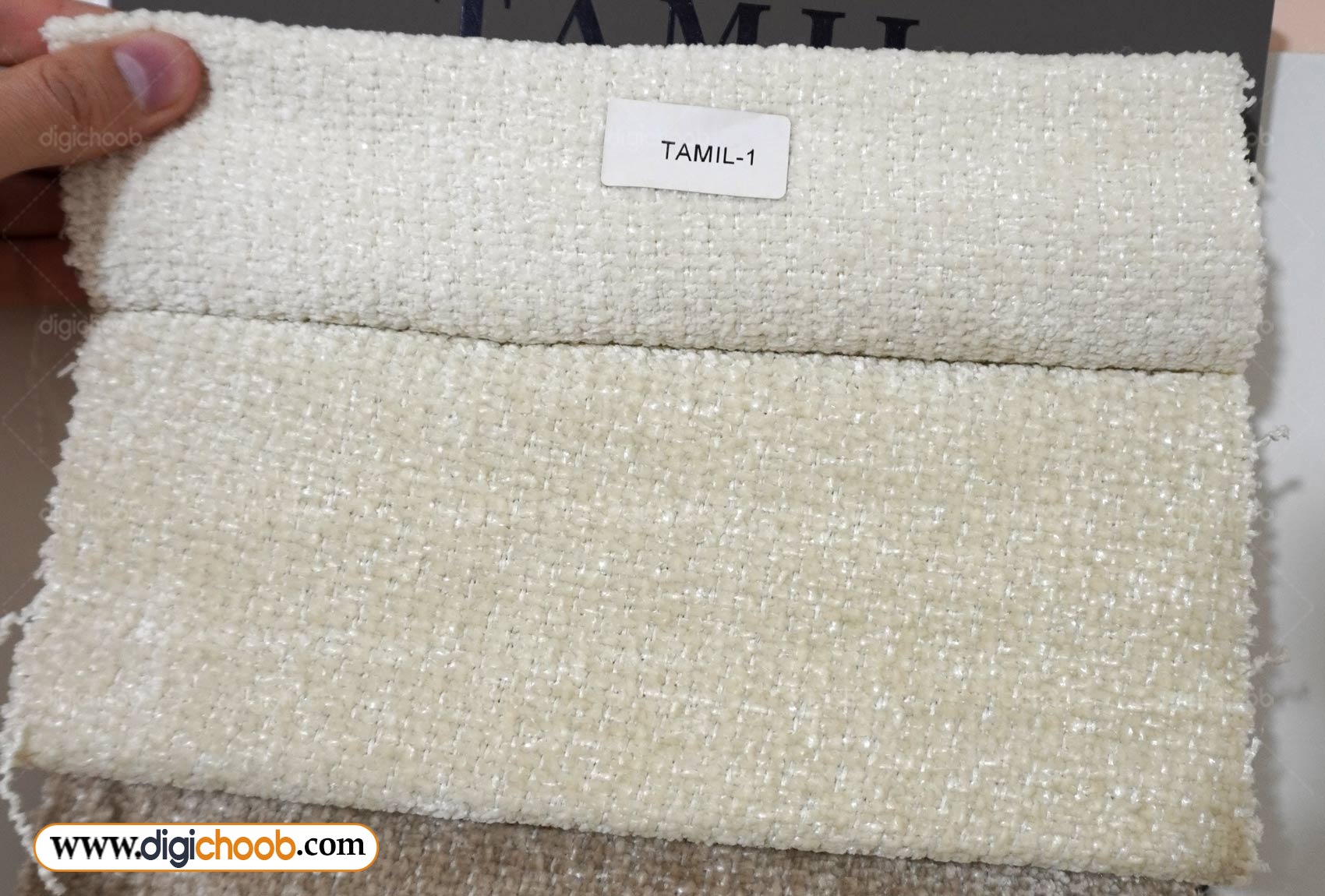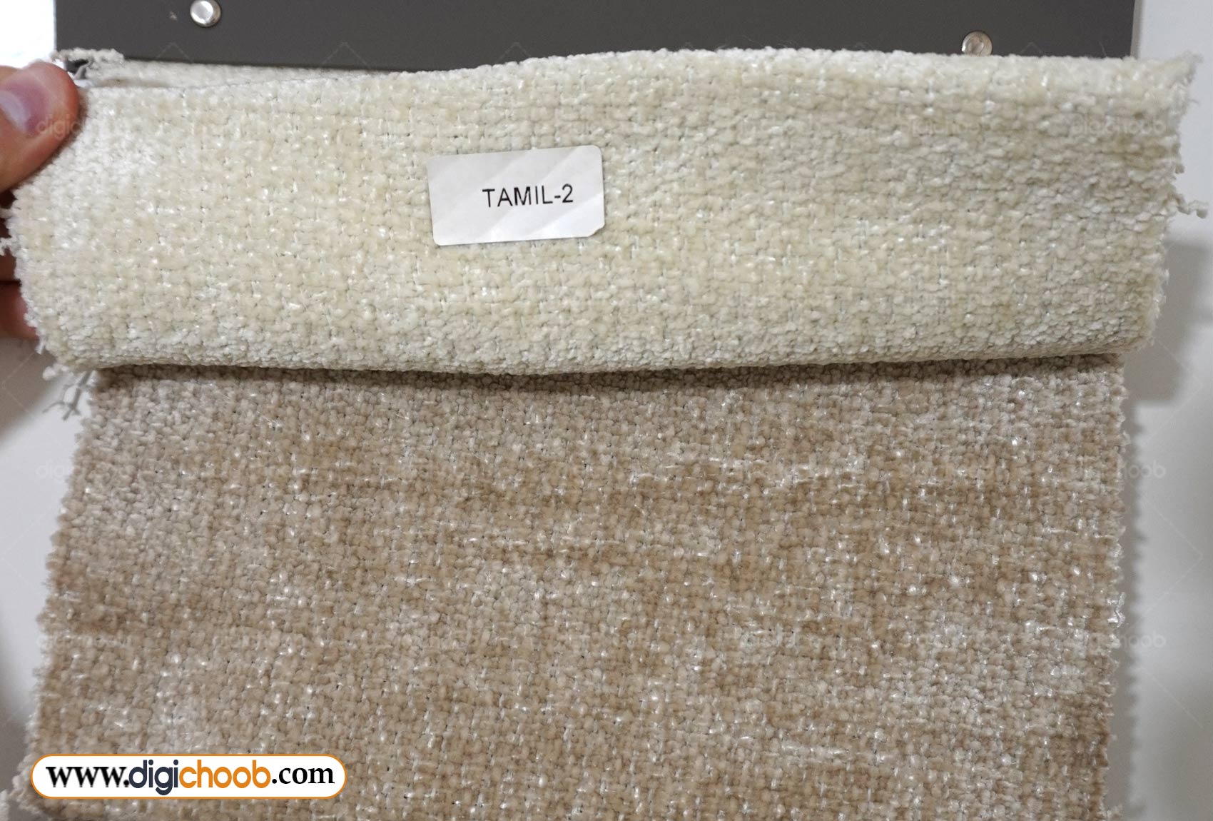 پارچه تامیل دارای بافت تاروپودی هست که در صورت دقت زیاد می توان ریشه نخ ها رو مشاهده هست ولی این تار و پود به شکل بسیار محکم در کنار هم قرار داده شده است و پارچه بازی نمی کند.