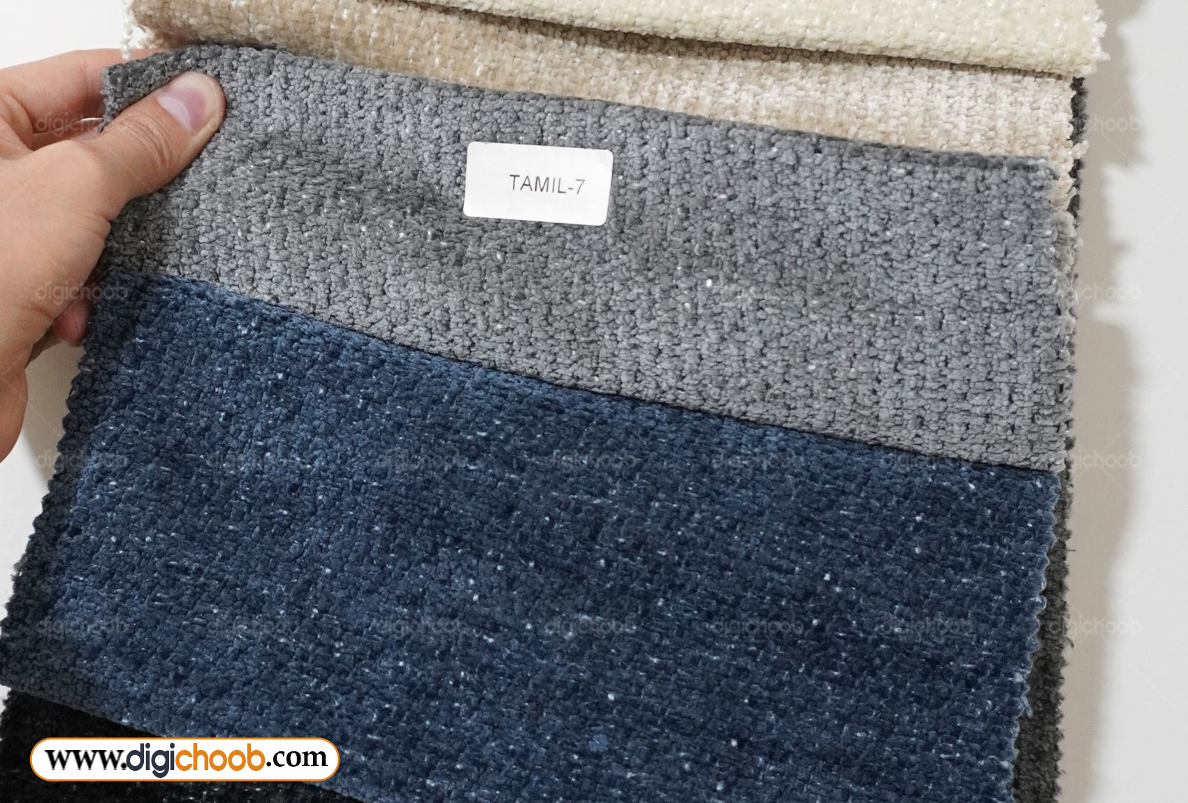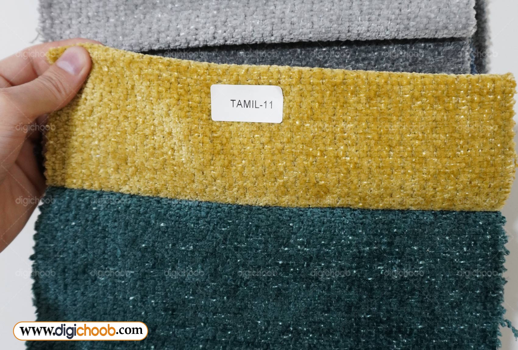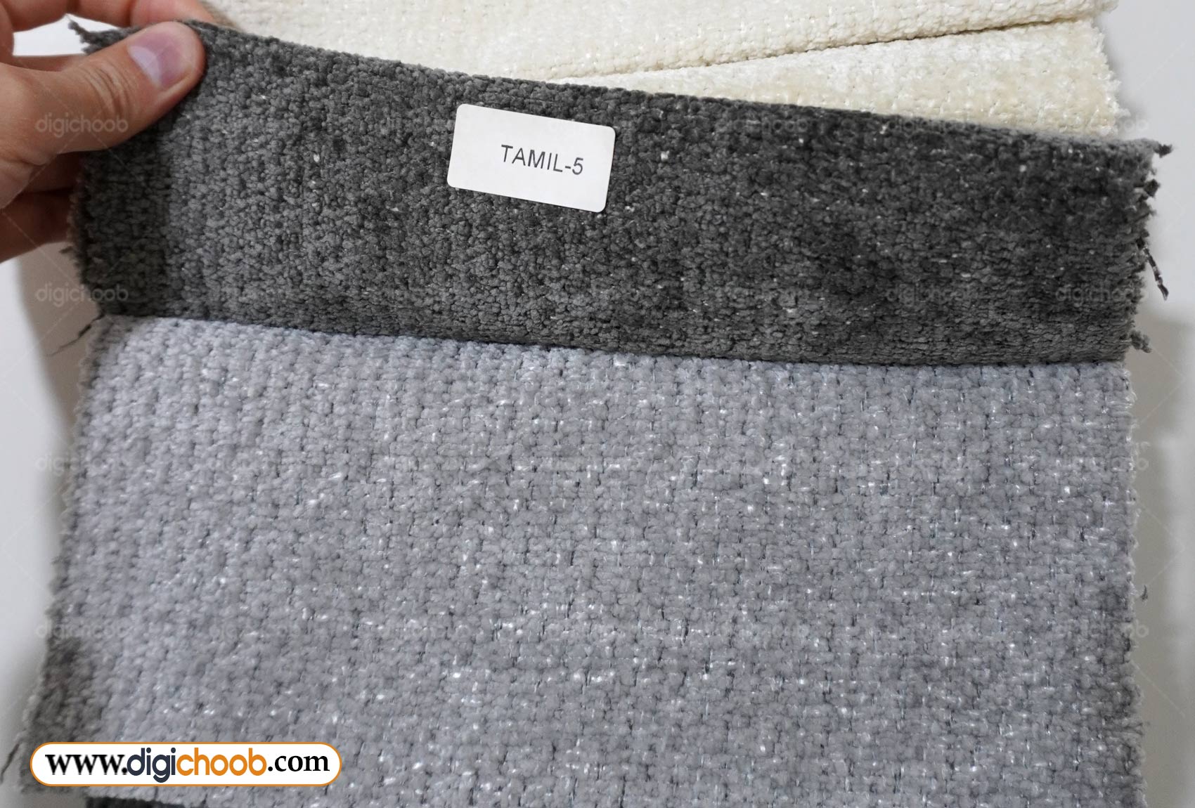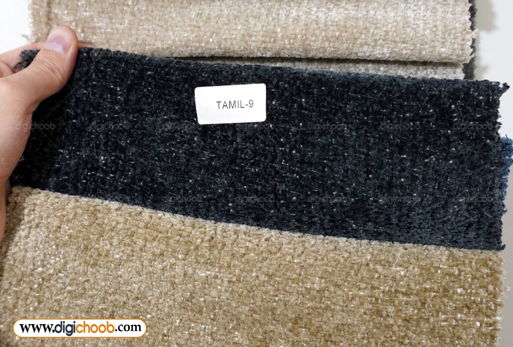 پارچه تامیل دارای بافت تاروپودی هست که در صورت دقت زیاد می توان ریشه نخ ها رو مشاهده هست ولی این تار و پود به شکل بسیار محکم در کنار هم قرار داده شده است و پارچه بازی نمی کند.