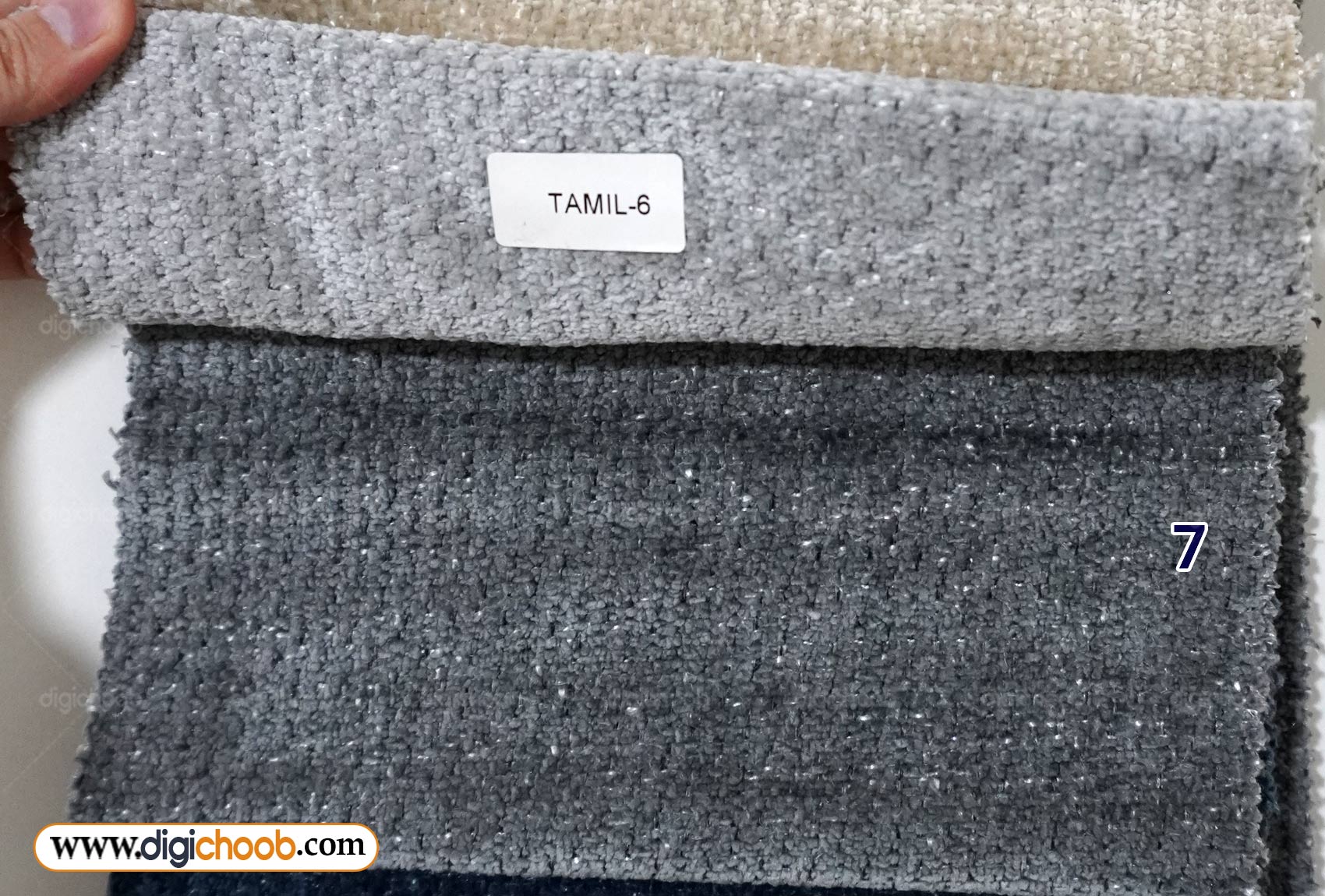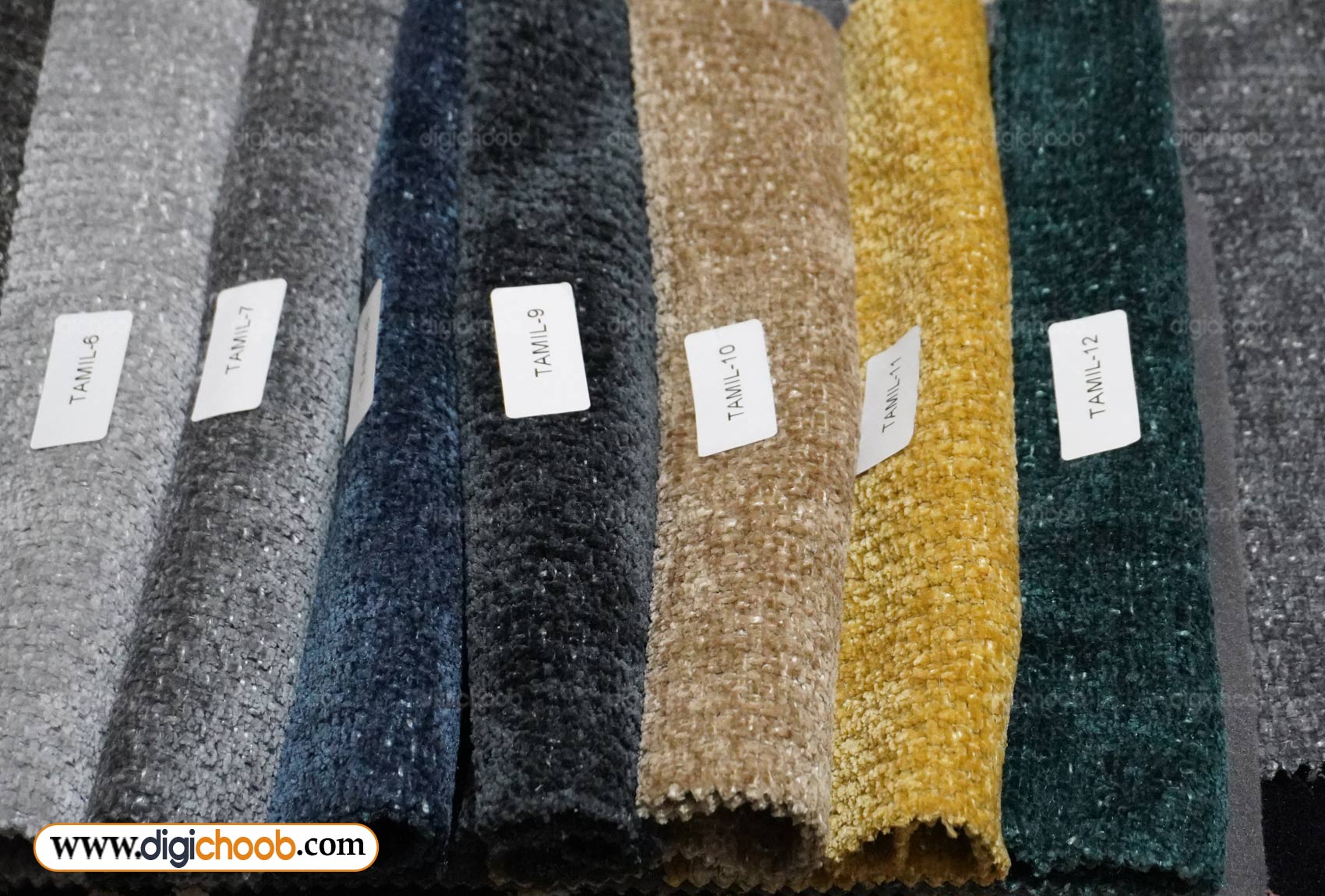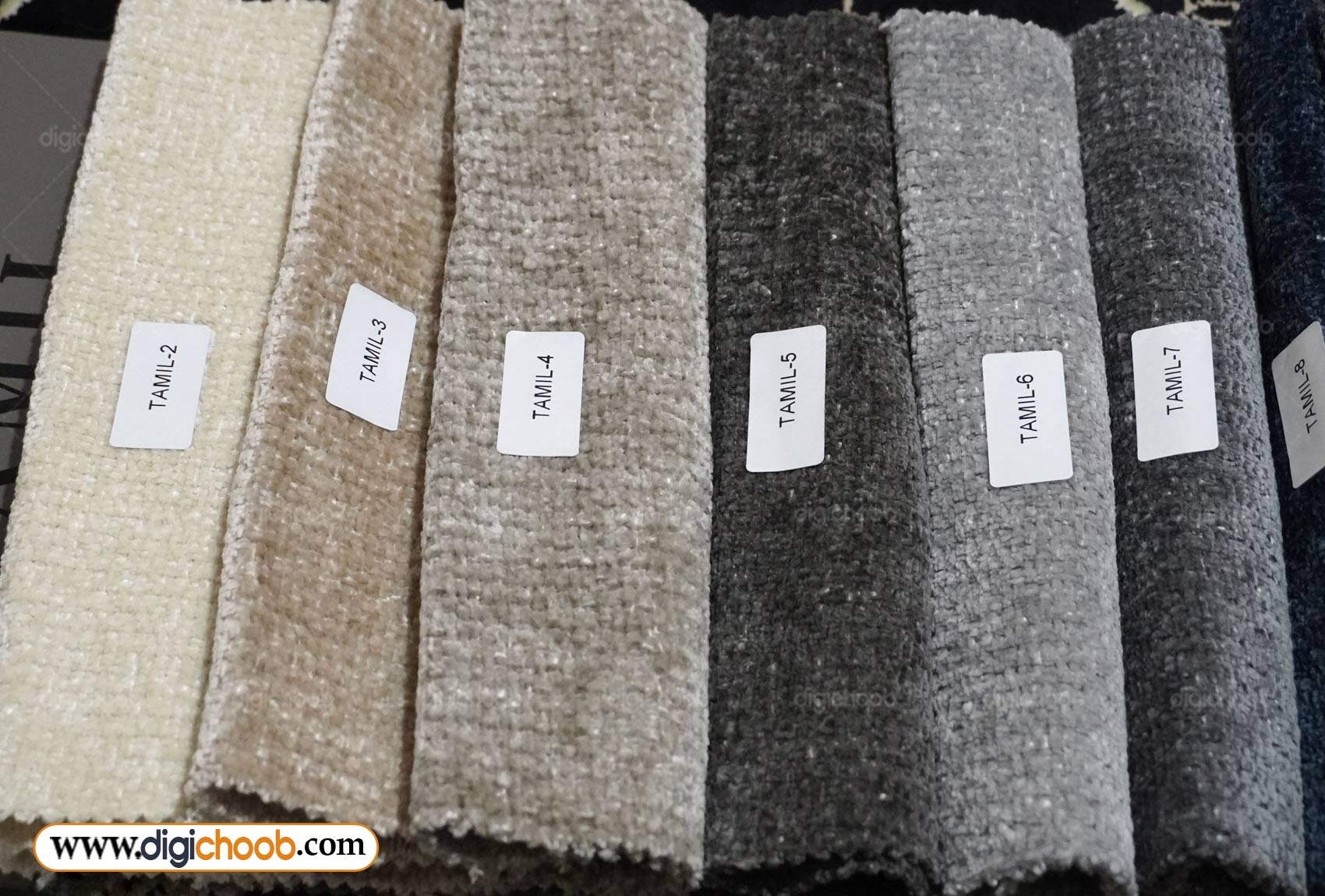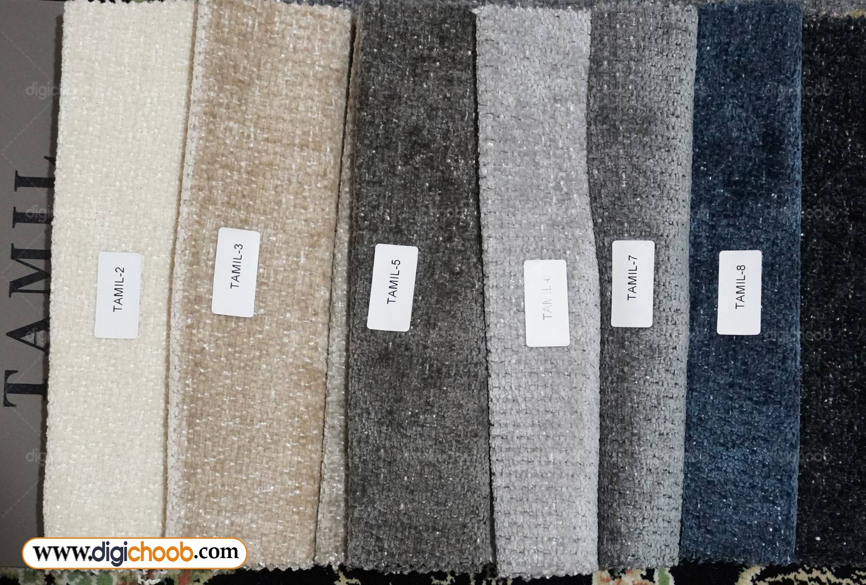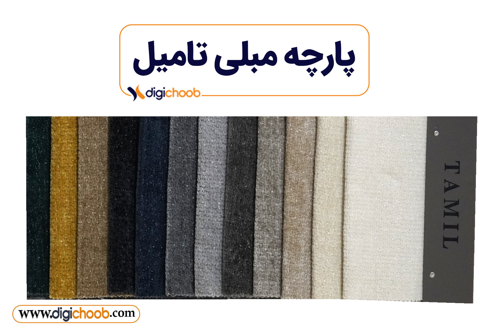 پارچه تامیل دارای بافت تاروپودی هست که در صورت دقت زیاد می توان ریشه نخ ها رو مشاهده هست ولی این تار و پود به شکل بسیار محکم در کنار هم قرار داده شده است و پارچه بازی نمی کند.